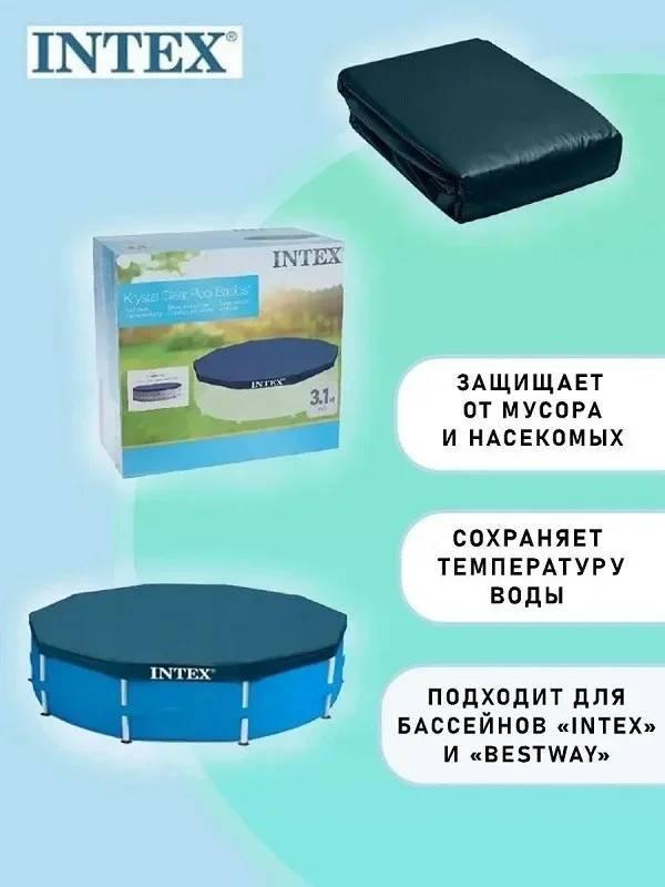 Покрывало предотвращает попадание листвы, насекомых и различного мусора. Также защищает от ультрафиолетового излучения, которое ускоряет процесс цветения воды. Рекомендуемая модель — Intex 28030.