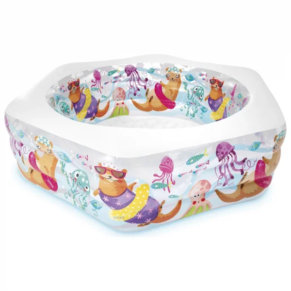 Классный надувной бассейн для малышей в форме шестиугольника! Смотрится необычно и ярко — детям точно понравится.