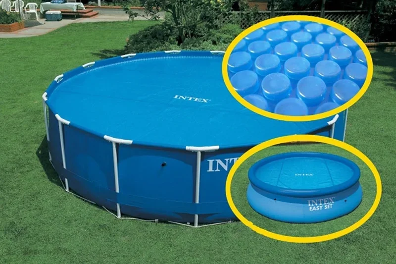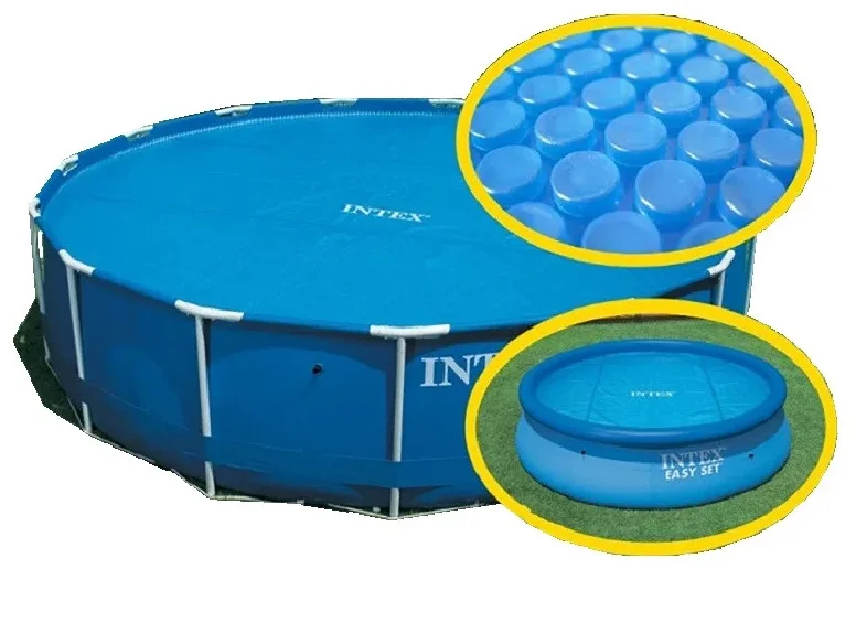Обогревающий (солнечный) тент предотвращает попадание грязи на поверхность воды и уменьшает её испарение, также, благодаря использованию прозрачной пленки (голубоватого оттенка) и ячеистой структуре, он не препятствует прохождению солнечных лучей и позволяет воде прогреться быстрее. Если обычный тент больше предназначен для долговременной защиты бассейна, то данный тент удобно использовать вечером — за ночь вода остынет меньше, а уже с первыми лучами солнца она начнет нагреваться. Еще одной особенностью данного тента является отсутствие каких-либо креплений (он плавает на поверхности воды). Поставляется в сумке для хранения с ручкой.